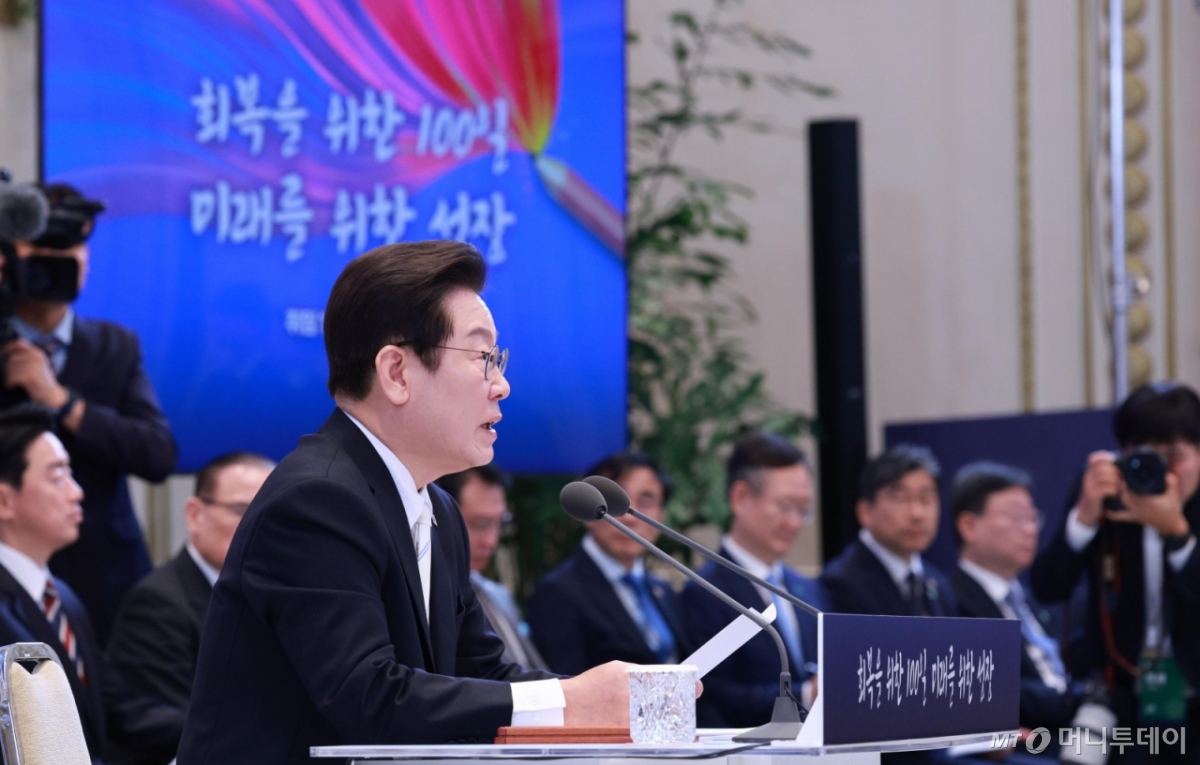 [서울=뉴시스] 고범준 기자 = 이재명 대통령이 11일 청와대 영빈관에서 열린 취임 100일 기자회견 '회복을 위한 100일, 미래를 위한 성장'에서 발언하고 있다. 2025.09.11. [email protected] /사진=고범준