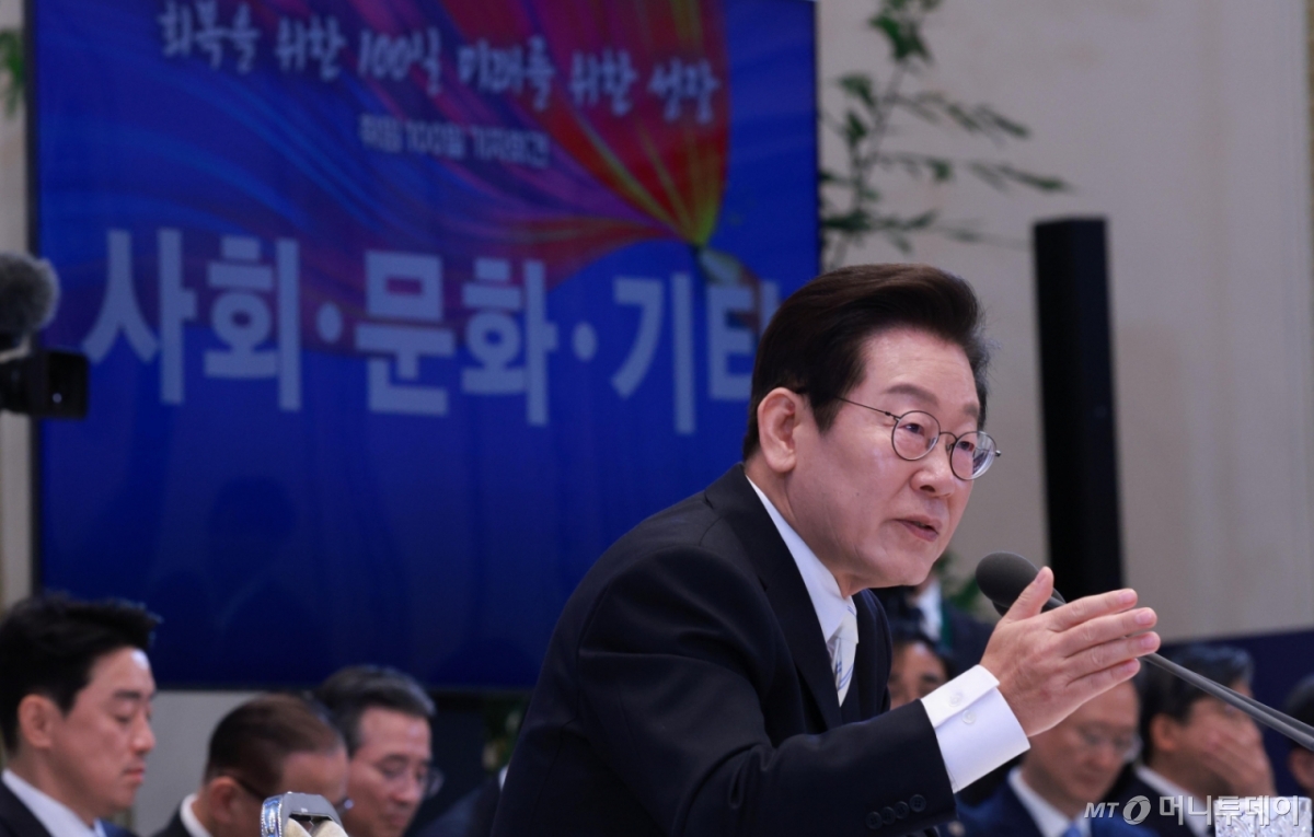 [서울=뉴시스] 고범준 기자 = 이재명 대통령이 11일 청와대 영빈관에서 열린 취임 100일 기자회견 '회복을 위한 100일, 미래를 위한 성장'에서 취재진 질문에 답하고 있다. 2025.09.11. [email protected] /사진=고범준