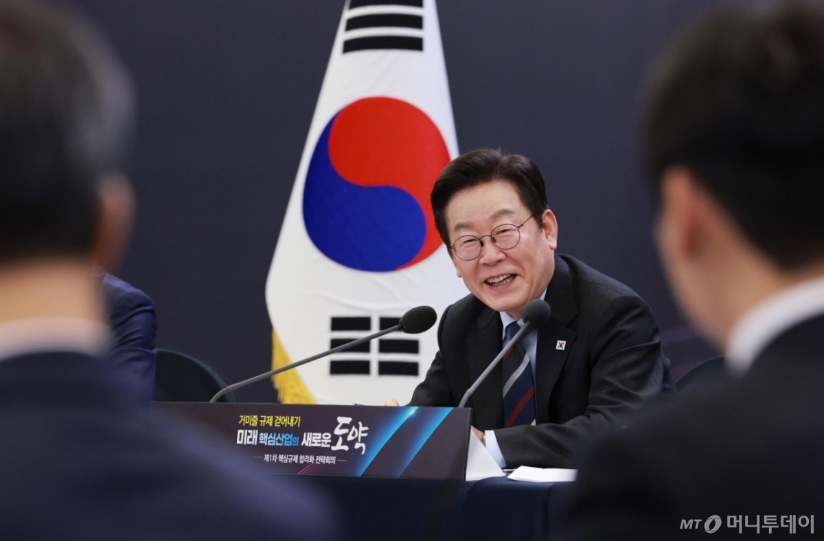 ![[서울=뉴시스] 고범준 기자 = 이재명 대통령이 15일 서울 성북구 한국과학기술연구원(KIST)에서 열린 제1차 핵심규제 합리화 전략회의에서 발언하고 있다. 2025.09.15. bjko@newsis.com /사진=고범준](https://thumb.mt.co.kr/cdn-cgi/image/f=avif/21/2025/09/2025091517383967975_2.jpg)