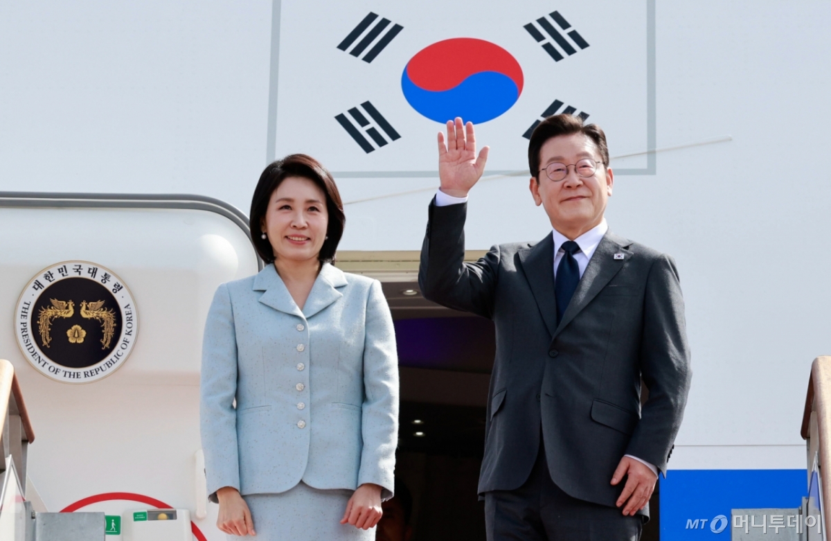 ![[성남=뉴시스] 최동준 기자 = 유엔 총회에 참석하는 이재명 대통령이 22일 경기 성남 서울공항에서 김혜경 여사와 출국하며 인사하고 있다. 2025.09.22.](https://thumb.mt.co.kr/cdn-cgi/image/f=avif/21/2025/09/2025092216020015978_1.jpg)