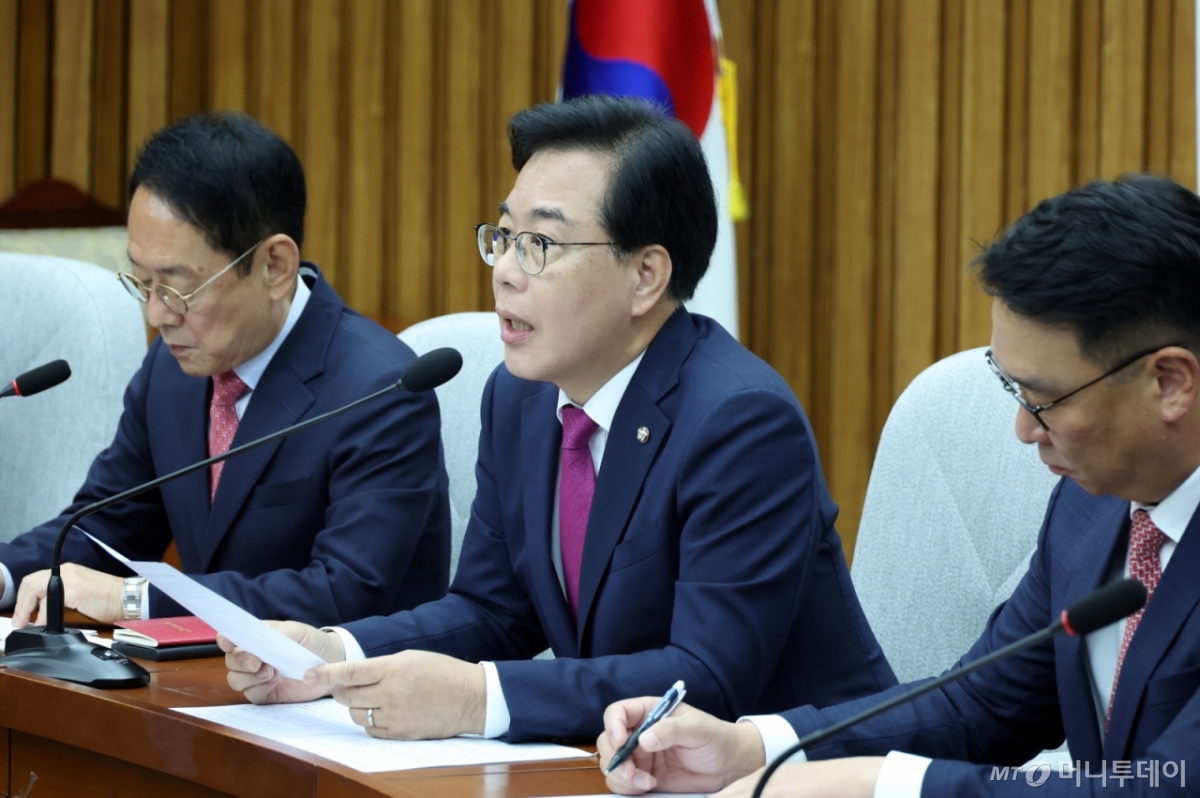 ![[서울=뉴시스] 고승민 기자 = 송언석 국민의힘 원내대표가 23일 서울 여의도 국회에서 열린 원내대책회의에서 발언하고 있다. 2025.09.23. kkssmm99@newsis.com /사진=고승민](https://thumb.mt.co.kr/cdn-cgi/image/f=avif/21/2025/09/2025092309310144660_1.jpg)