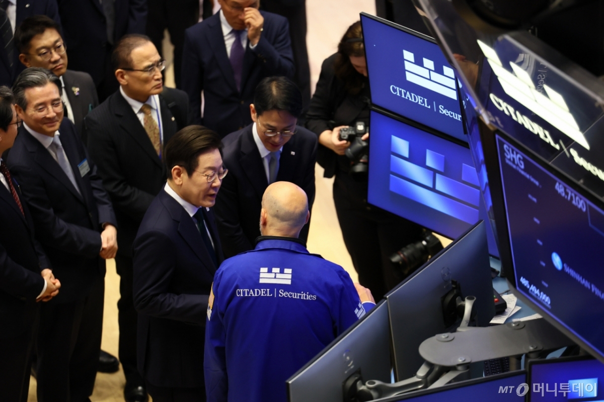 ![[뉴욕=뉴시스] 최동준 기자 = 이재명 대통령이 25일(현지 시간) 미국 뉴욕 증권거래소를 방문해 거래소를 둘러보고 있다. 2025.09.25. photocdj@newsis.com /사진=](https://thumb.mt.co.kr/cdn-cgi/image/f=avif/21/2025/09/2025092522432680623_1.jpg)