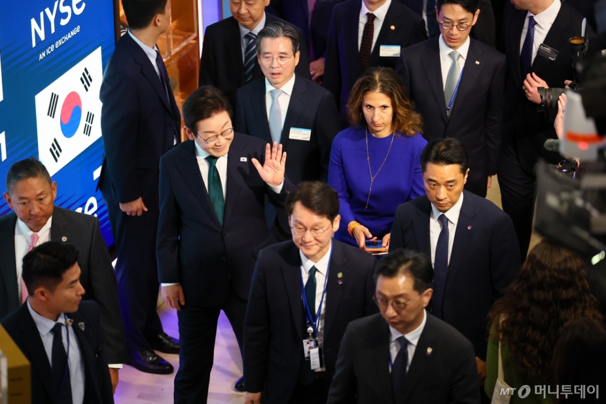 [the300] [뉴욕=뉴시스] 최동준 기자 = 이재명 대통령이 25일(현지 시간) 미국 뉴욕 증권거래소를 방문해 개장 벨을 타종하기 위해 이동하고 있다. 푸른색 옷은 린 마틴 뉴욕 증권거래소 회장. 2025.09.25. [email protected] /사진= 이재명 대통령, 25일(현지시간) 미국 뉴욕 월스트리트(Wall Street) 뉴욕증권거래소(NYSE). 독자들의 PICK! "유명 남자 아이돌, 유흥업소 종사자와 부적절 관계"…전 여친 폭로 유키스 동호 전처 "같이 성매매한 멤버 풀겠다"…카톡 공개 허리 수술받았는데…박신양 "PD가 병실 찾아와 촬영 요구" 폭로 '사생활 논란' 박시후, 가만히 앉아서 억대 수익?...근황에 깜짝