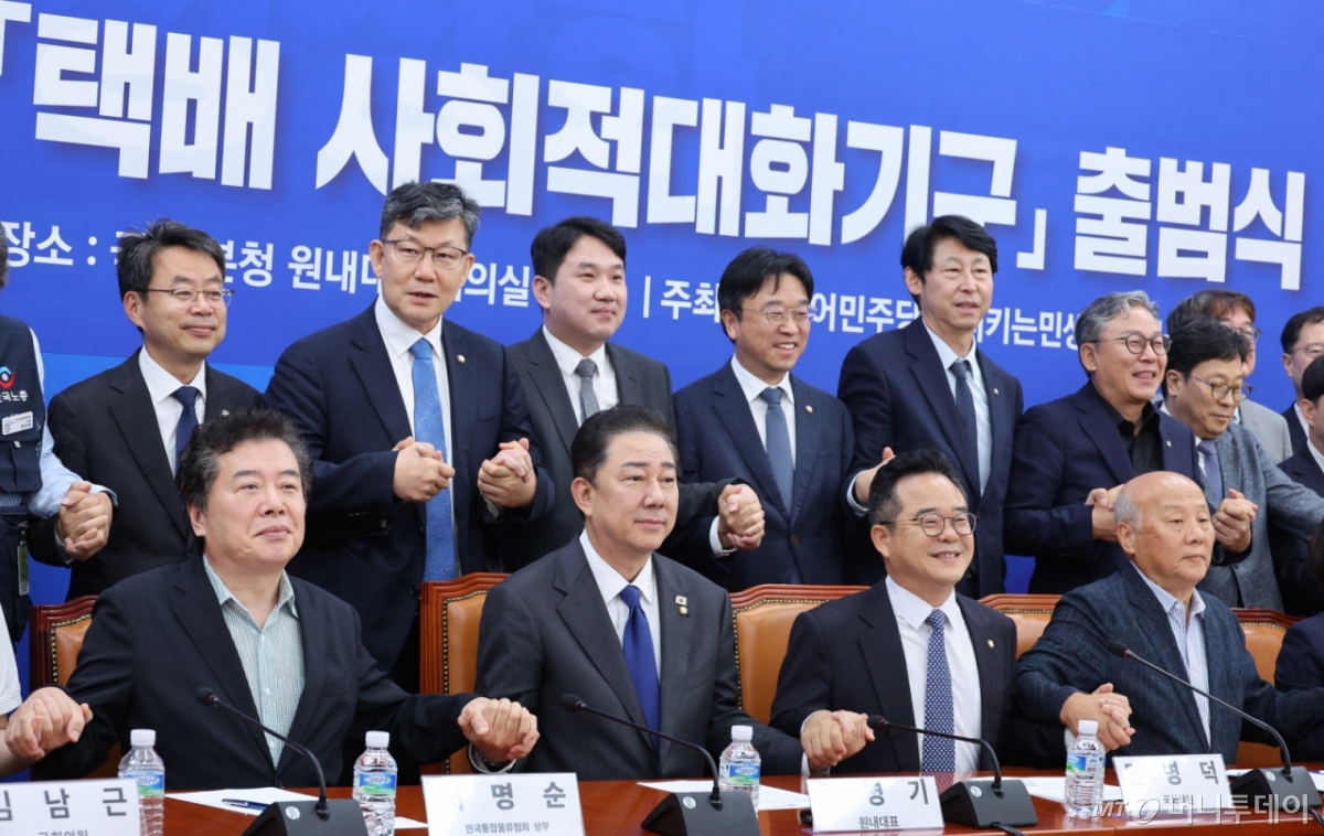 김 원내대표는 "사회적 대화를 통해 서로의 현실을 이해하고 함께 새로운 기준을 만들겠다"며 "기구 출범으로 사회적 대타협의 기반이 마련되기를 기대한다. 민주당은 택배 노동자의 건강권 보호와 공정한 시장 질서 확립을 위해 지원을 아끼지 않겠다"고 말했다.