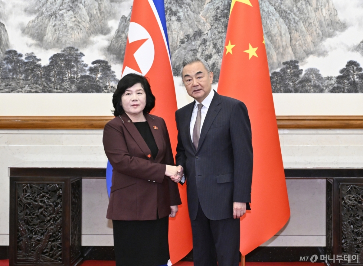 ![[베이징=신화/뉴시스] 최선희(왼쪽) 북한 외무상이 28일(현지 시간) 중국 베이징에서 왕이 중국 외교부장과 회담 전 악수하고 있다. 2025.09.29.](https://thumb.mt.co.kr/cdn-cgi/image/f=avif/21/2025/09/2025092907484691058_1.jpg)