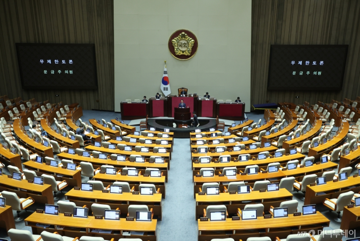 국민의힘은 29일 서울 여의도 국회 본회의에서 국회에서의 증언·감정 등에 관한 법률 일부개정안(증감법)에 대한 필리버스터를 이어가고 있다. 이날 밤 더불어민주당 주도로 필리버스터가 강제 종료되면 9월 본회의는 마무리된다. 이번 본회의에서 민주당은 증감법 외에 △정부조직법 개정안 △방송미디어통신위원회 설치법 △국회법 개정안을 처리했다.