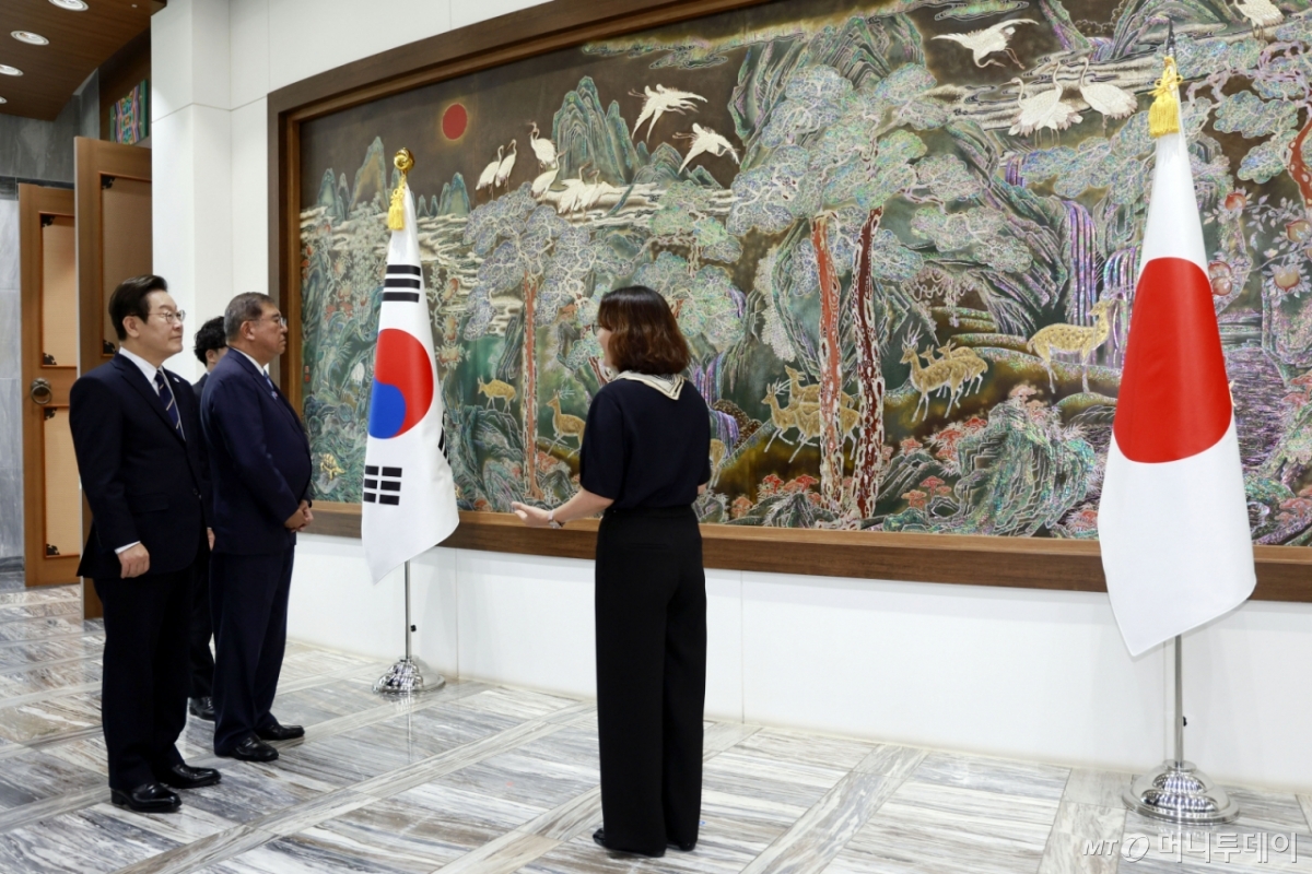 [the300] [부산=뉴시스] 최동준 기자 = 이재명 대통령과 이시바 시게루 일본 총리가 30일 부산 누리마루 APEC 하우스 기념관에서 문화 관광 해설사로부 김규장 명장의 '십이장생도'에 대한 설명을 듣 있다. 2025.09.30. [email protected] /사진=최동준 30일 강유정 대통령실 대변인. 독자들의 PICK! "쌍욕도 모자라, 손절" 서장훈 상담 거부...1억 탕진 남편 태도에 '폭발' 정력과 청력 맞바꾼 배기성, '8일 8회' 무리수에 결국 '난청' 진단 "유명 남자 아이돌, 유흥업소 종사자와 부적절 관계"…전 여친 폭로 '사생활 논란' 박시후, 가만히 앉아서 억대 수익?...근황에 깜짝