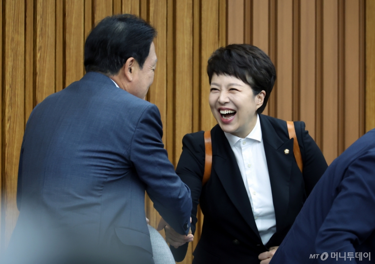 ![[서울=뉴시스] 고승민 기자 = 김은혜 국민의힘 원내정책수석부대표가 1일 서울 여의도 국회에서 열린 상임위원장 및 간사단 회의에서 의원들과 인사를 나누고 있다. 2025.10.01. kkssmm99@newsis.com /사진=고승민](https://thumb.mt.co.kr/cdn-cgi/image/f=avif/21/2025/10/2025101011104912439_1.jpg)