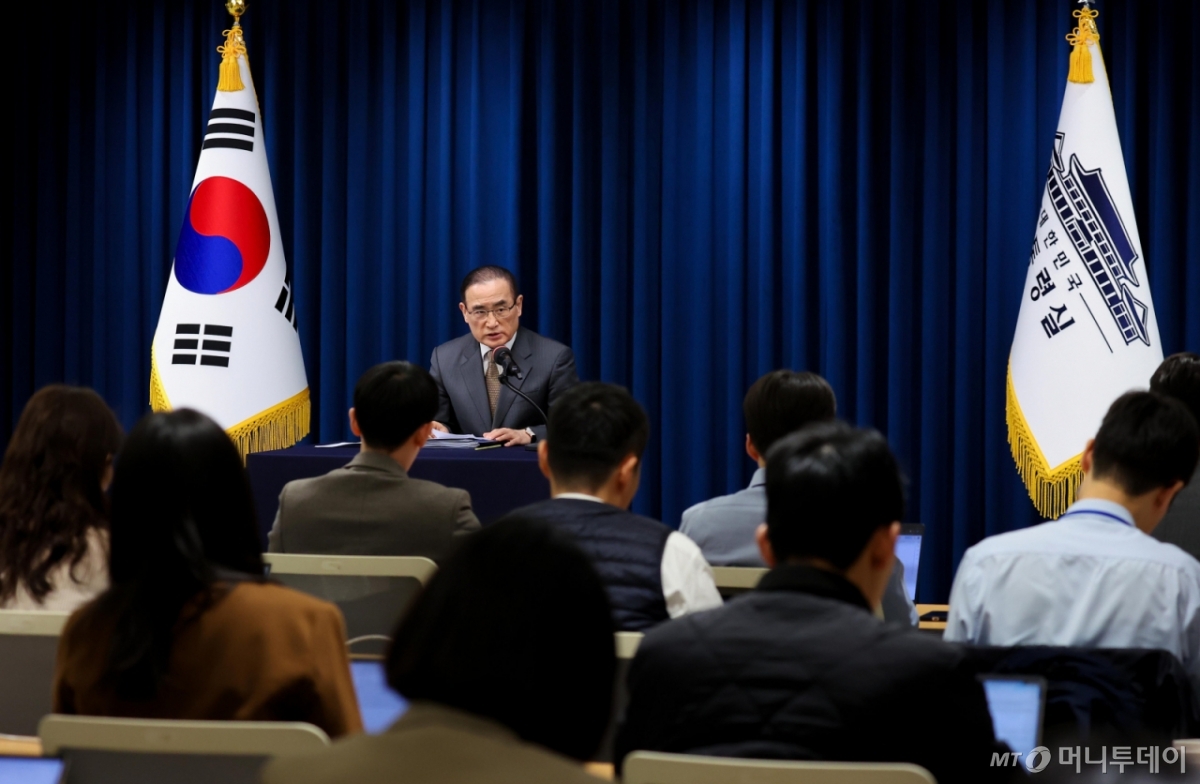 [서울=뉴시스] 고범준 기자 = 위성락 국가안보실장이 24일 서울 용산 대통령실 청사에서 ASEAN 순방 및 APEC 정상회의 일정 관련 브리핑을 하고 있다. (대통령실통신사진기자단) 2025.10.24. bjko@newsis.com /사진=류현주