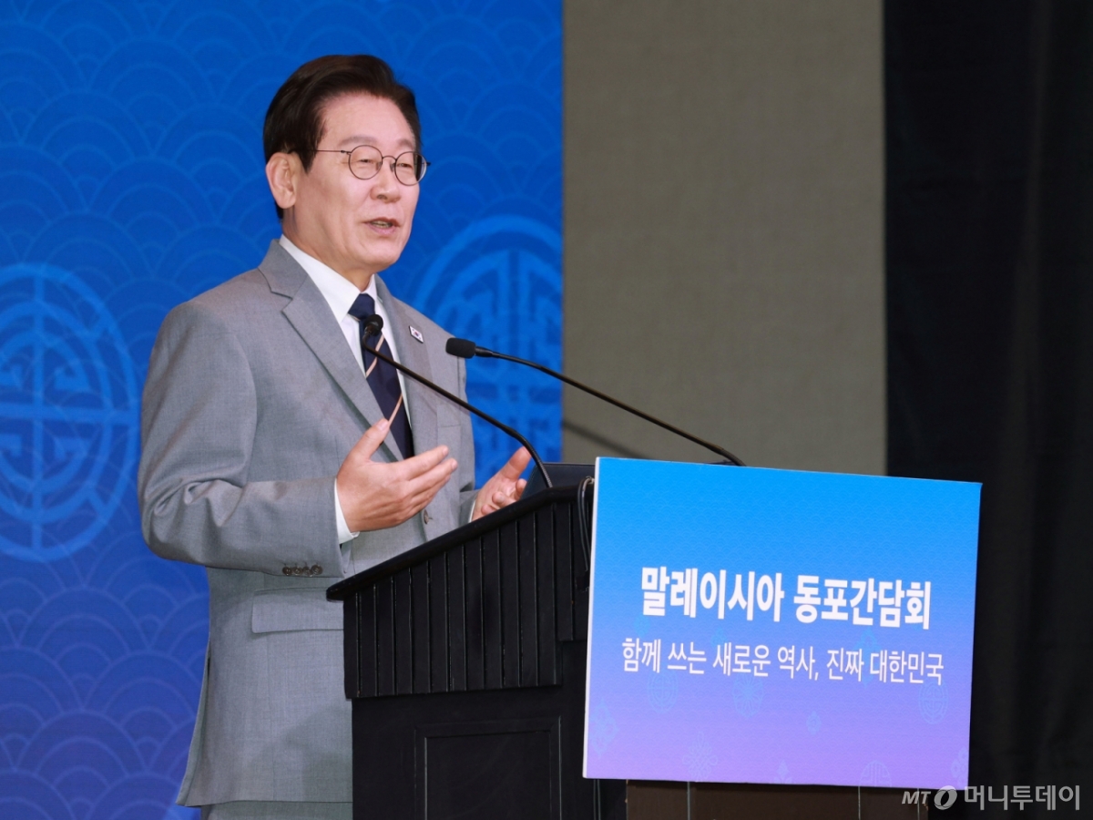 [쿠알라룸푸르=뉴시스] 고범준 기자 = 이재명 대통령이 26일(현지 시간) 말레이시아 쿠알라룸푸르 한 호텔에서 열린 동포 간담회에서 인사말을 하고 있다. 2025.10.26. [email protected] /사진=고범준