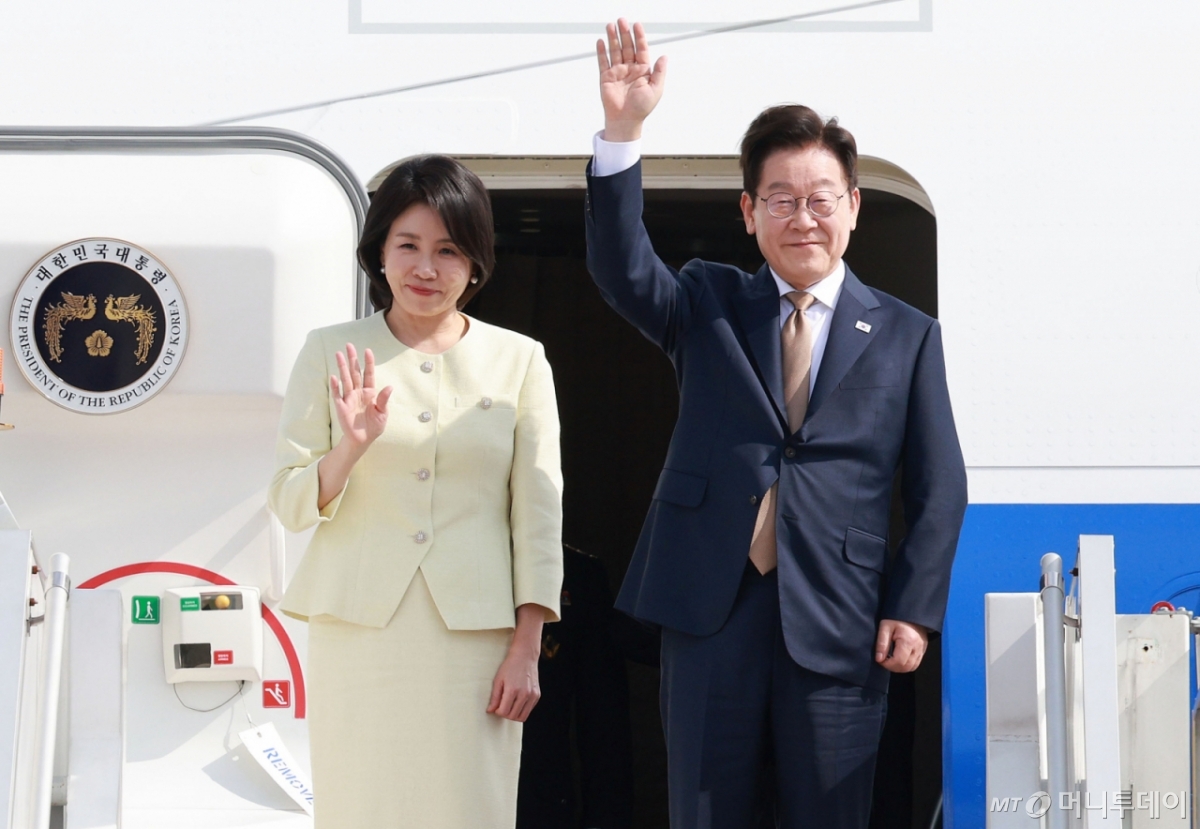 ![[쿠알라룸푸르=뉴시스] 고범준 기자 = 아세안 정상회의 일정을 마친 이재명 대통령과 김혜경 여사가 27일(현지 시간) 말레이시아 쿠알라룸푸르 국제공항에서 공군1호기에 탑승해 인사하고 있다. 2025.10.27. bjko@newsis.com /사진=고범준](https://thumb.mt.co.kr/cdn-cgi/image/f=avif/21/2025/10/2025102718003582427_1.jpg)