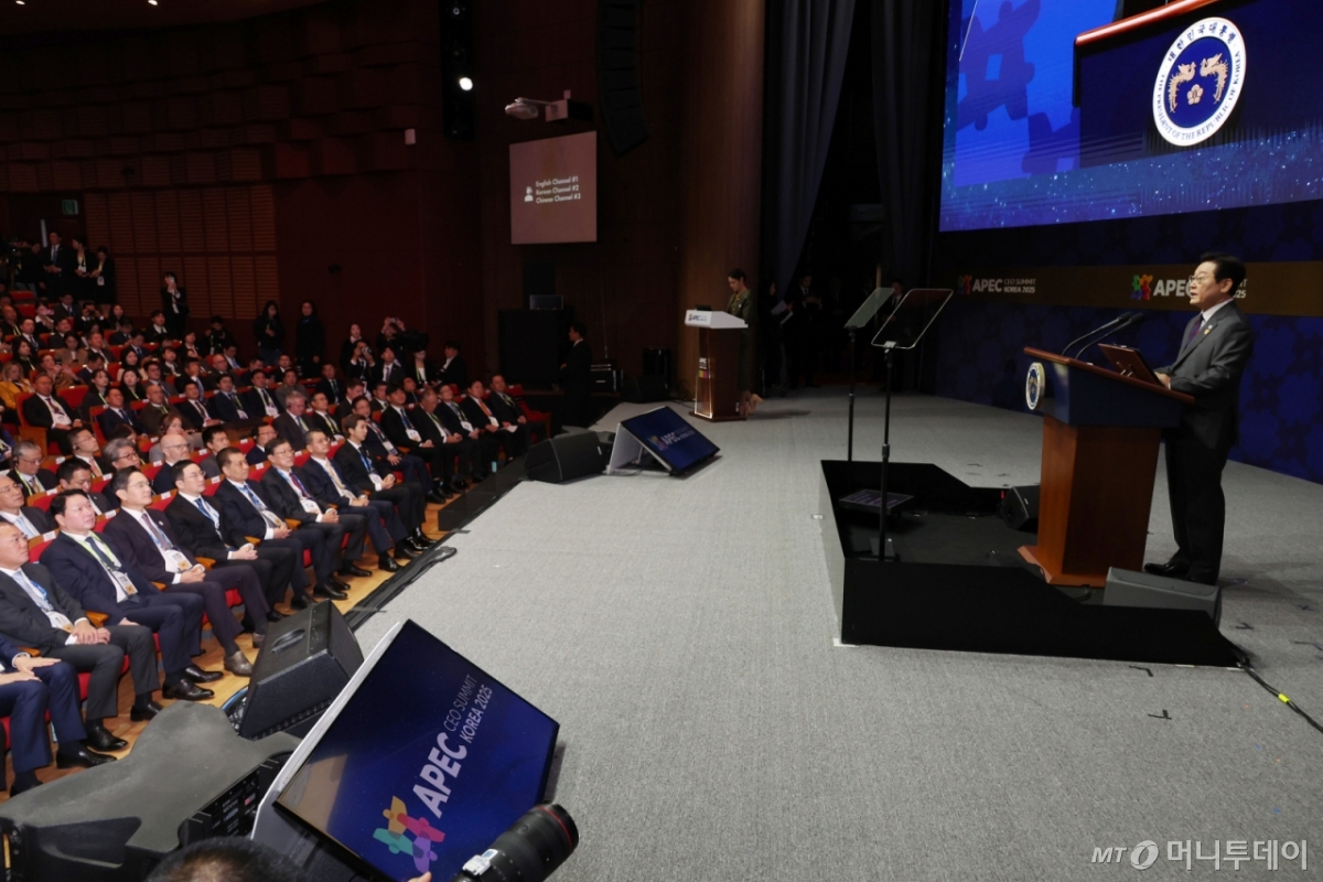 [the300] [경주=뉴시스] 고범준 기자 = 이재명 대통령이 29일 경북 경주예술의전당에서 열린 아시아태평양경제협력체(APEC) CEO 써밋에서 인사말을 하고 있다. (대통령실통신사진기자단) 2025.10.29. [email protected] /사진= 이재명 대통령, 29일 경주 예술의전당 '2025 APEC(아시아태평양경제협력체) CEO(최고경영자) 서밋' 독자들의 PICK! 허니문 베이비 '출생의 비밀'...결혼 직전 전남친 만난 아내 소유, 임영웅과 '제주도 열애설' 전말 공개 '음주 뺑소니' 김호중, 옥중 50억 돈방석?…지분가치 '반전' 남편 방에 정력제..."아들아, 인생 즐겨" 불륜 응원한 시모