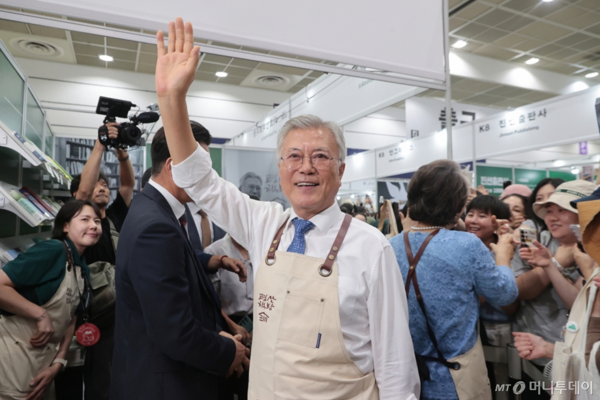 ![[서울=뉴시스] 박진희 기자 = 문재인 전 대통령과 부인 김정숙 여사가 18일 서울 강남구 코엑스에서 열린 '2025 서울국제도서전' 평산책방 부스에서 관람객들에게 인사를 하고 있다. (공동취재) 2025.06.18. pak7130@newsis.com /사진=박진희](https://thumb.mt.co.kr/cdn-cgi/image/f=avif/21/2025/11/2025110414424917608_1.jpg)