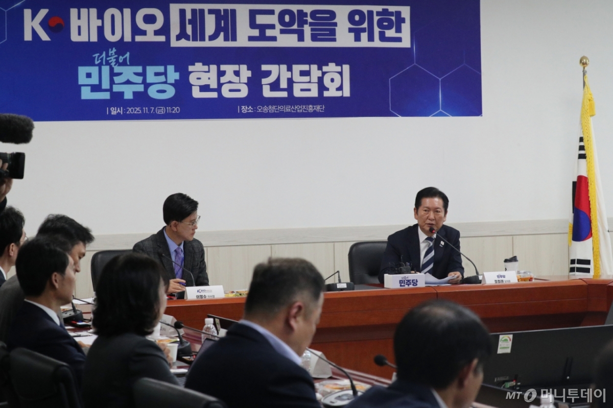 정청래 더불어민주당 대표가 바이오 산업과 관련해 "국가가 전략적으로 투자하고 제도적으로 지원할 수 있는 틀을 빨리 만들어야 되겠다"고 밝혔다.