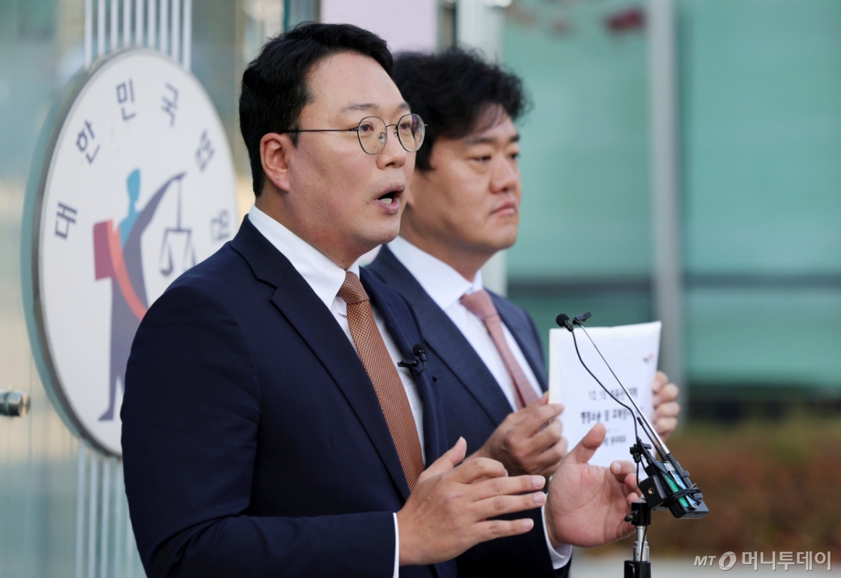 ![[서울=뉴시스] 홍효식 기자 = 천하람 개혁신당 원내대표가 11일 오전 서울 서초구 행정법원 앞에서 10.15 부동산 대책 취소소송 소장 및 효력정지 신청서를 접수하기 앞서 입장을 밝히고 있다. 오른쪽은 김연기 법률자문위원장. 2025.11.11. yesphoto@newsis.com /사진=홍효식](https://thumb.mt.co.kr/cdn-cgi/image/f=avif/21/2025/11/2025111113460034982_1.jpg)