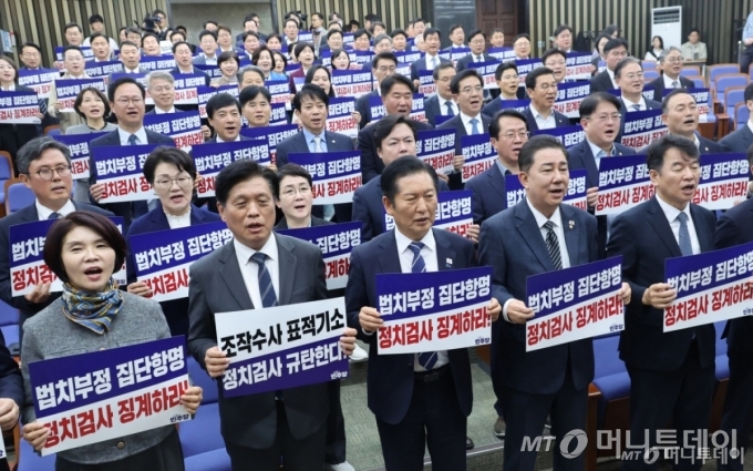 김 대변인은 "저희가 지금 국정조사 관련 요청은 (검찰의) 외압수사와 기소, 선택적 집단항명을 이야기하는 것이고 저쪽은 항소포기, (검찰에 대한) 외압 이렇게 지금 하자는 것"이라고 말했다. 이어 "일단은 이건 다 묶어서 하자는 것은 의견이 좁혀진 것 같은데 그럼에도 방법에 대해서는 법제사법위원회나 특별위원회에서 하는 것은 정해지지 않아 논의가 필요하다"고 말했다.
