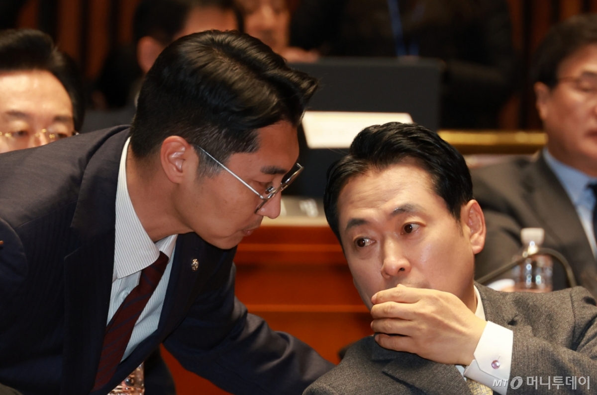 ![[서울=뉴시스] 고승민 기자 = 장동혁 국민의힘 대표가 13일 서울 여의도 국회에서 열린 의원총회에서 박준태 당대표 비서실장과 대화하고 있다. 2025.11.13. kkssmm99@newsis.com /사진=](https://thumb.mt.co.kr/cdn-cgi/image/f=avif/21/2025/11/2025111412021887683_1.jpg)