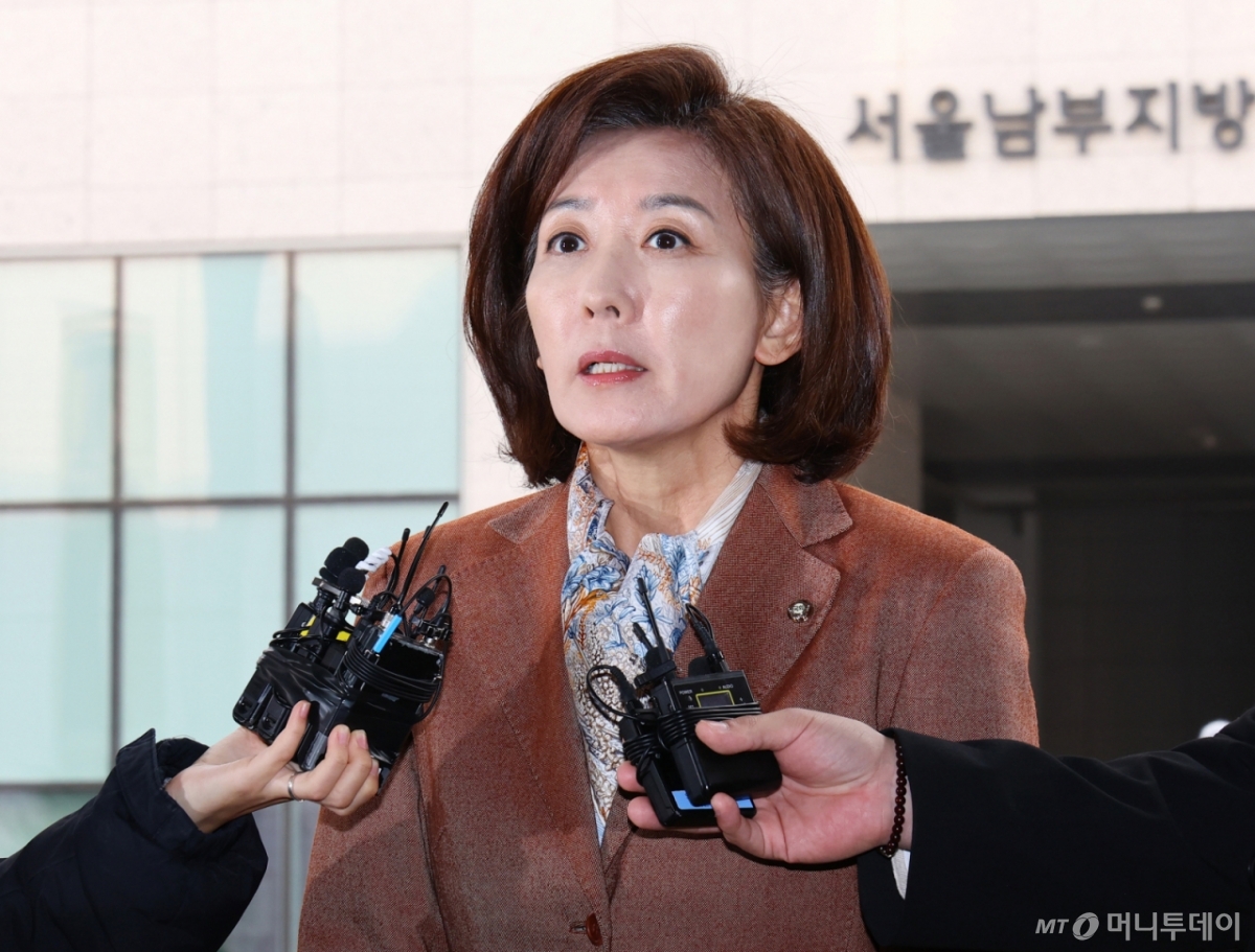 [서울=뉴시스] 황준선 기자 = 나경원 국민의힘 의원이 20일 오후 서울 양천구 서울남부지방법원에서 열린 국회 '패스트트랙 충돌' 사건 선고 기일에 출석하며 입장을 밝히고 있다. 여야는 지난 2019년 4월 고위공직자범죄수사처 신설 법안과 연동형 비례대표제 도입 법안 등에 대한 패스트트랙(신속처리 안건) 지정 여부를 두고 물리적으로 충돌했고, 이 과정에서 나 의원과 황교안 전 국무총리 등은 국회 의사 진행을 방해한 혐의로 기소됐다. 2025.11.20. [email protected] /사진=황준선