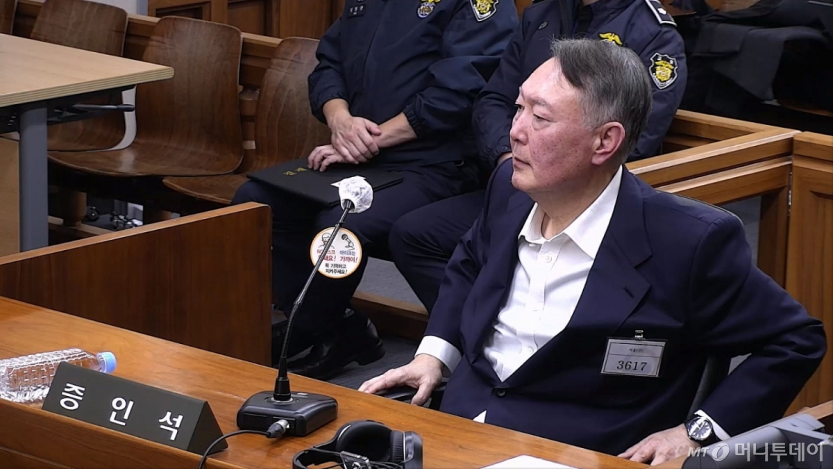 ![[서울=뉴시스] 윤석열 전 대통령이 19일 서울 서초구 서울중앙지법에서 열린 내란방조, 위증 등 혐의 한덕수 전 국무총리 10차 공판에 증인으로 출석해있다. (사진=서울중앙지방법원 제공) 2025.11.19. photo@newsis.com *재판매 및 DB 금지 /사진=](https://thumb.mt.co.kr/cdn-cgi/image/f=avif/21/2025/11/2025112309323875301_1.jpg)