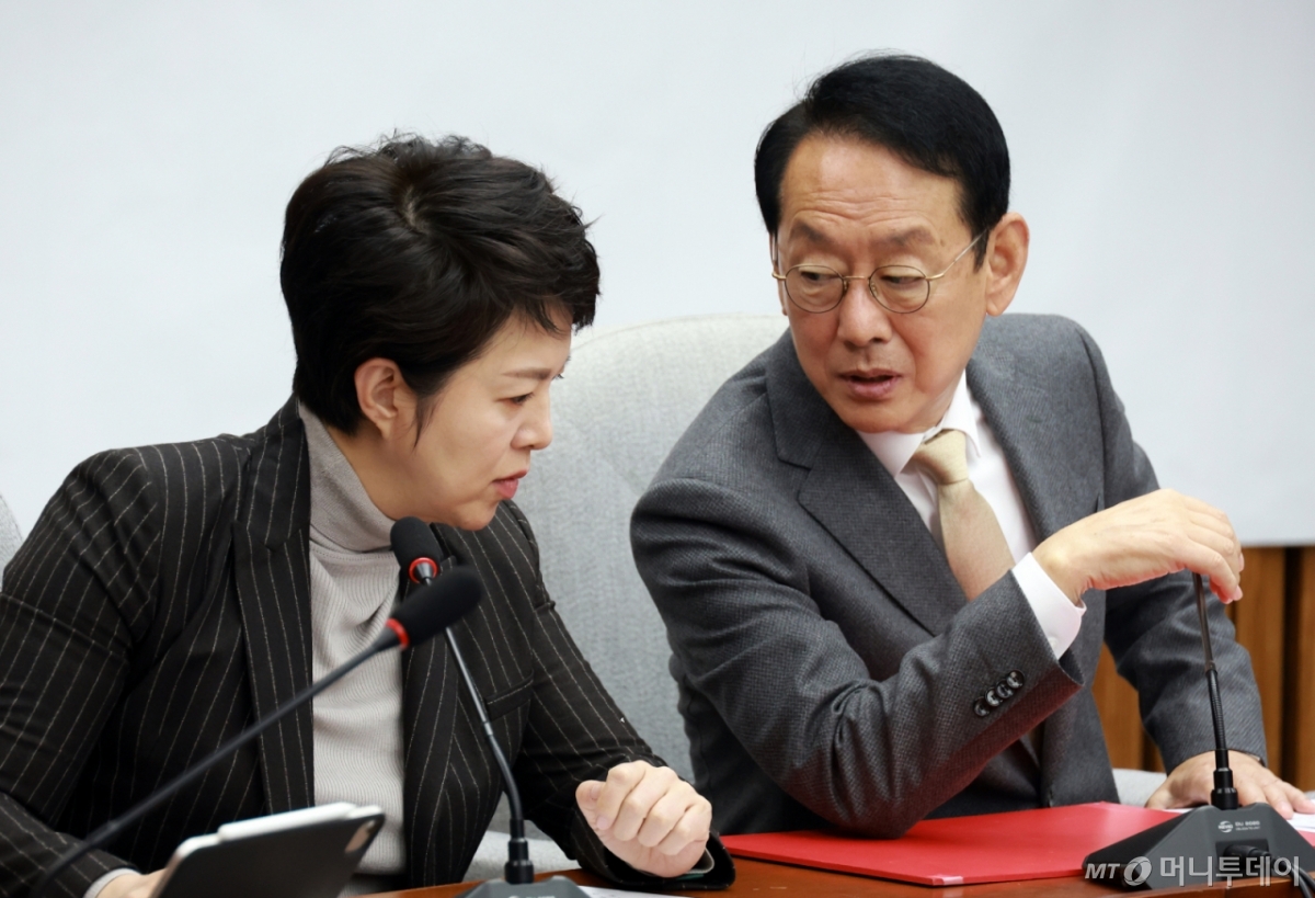 ![[서울=뉴시스] 고승민 기자 = 국민의힘 김도읍 정책위의장과 김은혜 원내정책수석부대표가 25일 서울 여의도 국회에서 열린 원내대책회의에서 대화하고 있다. 2025.11.25. kkssmm99@newsis.com /사진=고승민](https://thumb.mt.co.kr/cdn-cgi/image/f=avif/21/2025/11/2025112510340717148_1.jpg)