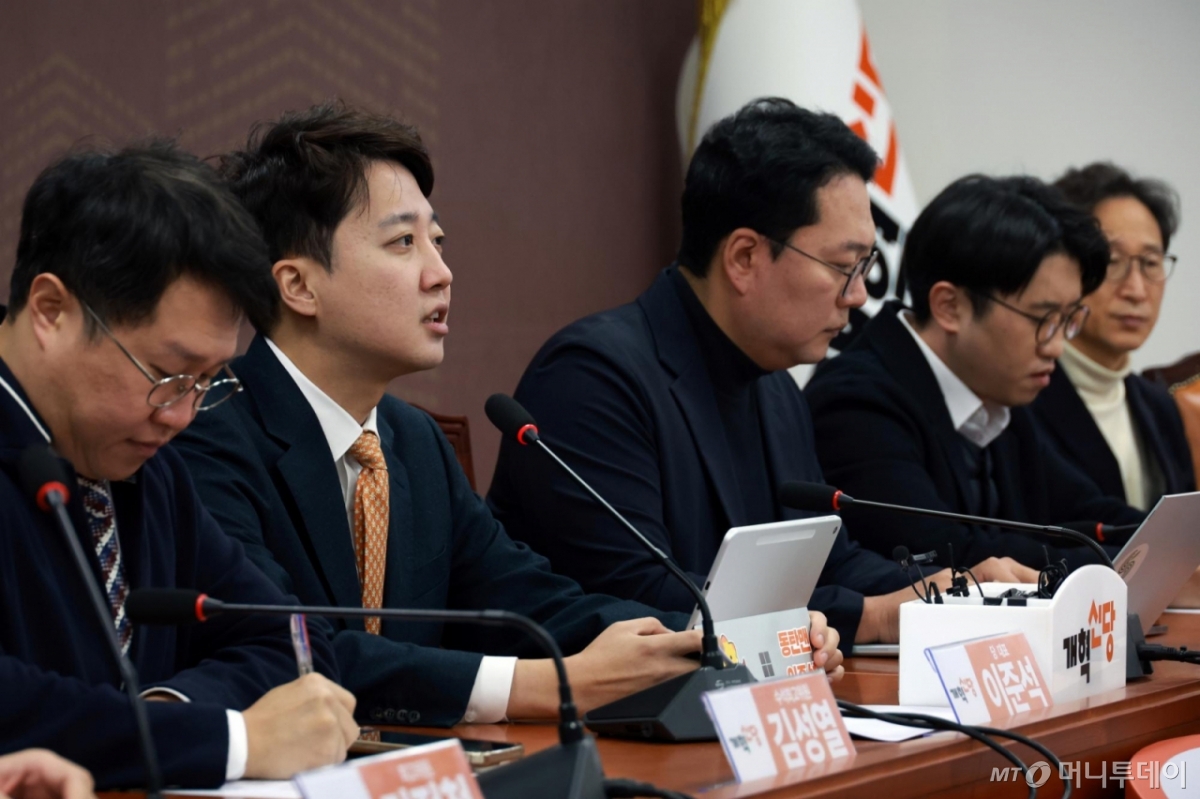 ![[서울=뉴시스] 고승민 기자 = 이준석 개혁신당 대표가 1일 서울 여의도 국회에서 열린 최고위원회의에서 발언하고 있다. 2025.12.01. kkssmm99@newsis.com /사진=고승민](https://thumb.mt.co.kr/cdn-cgi/image/f=avif/21/2025/12/2025120210344683734_1.jpg)