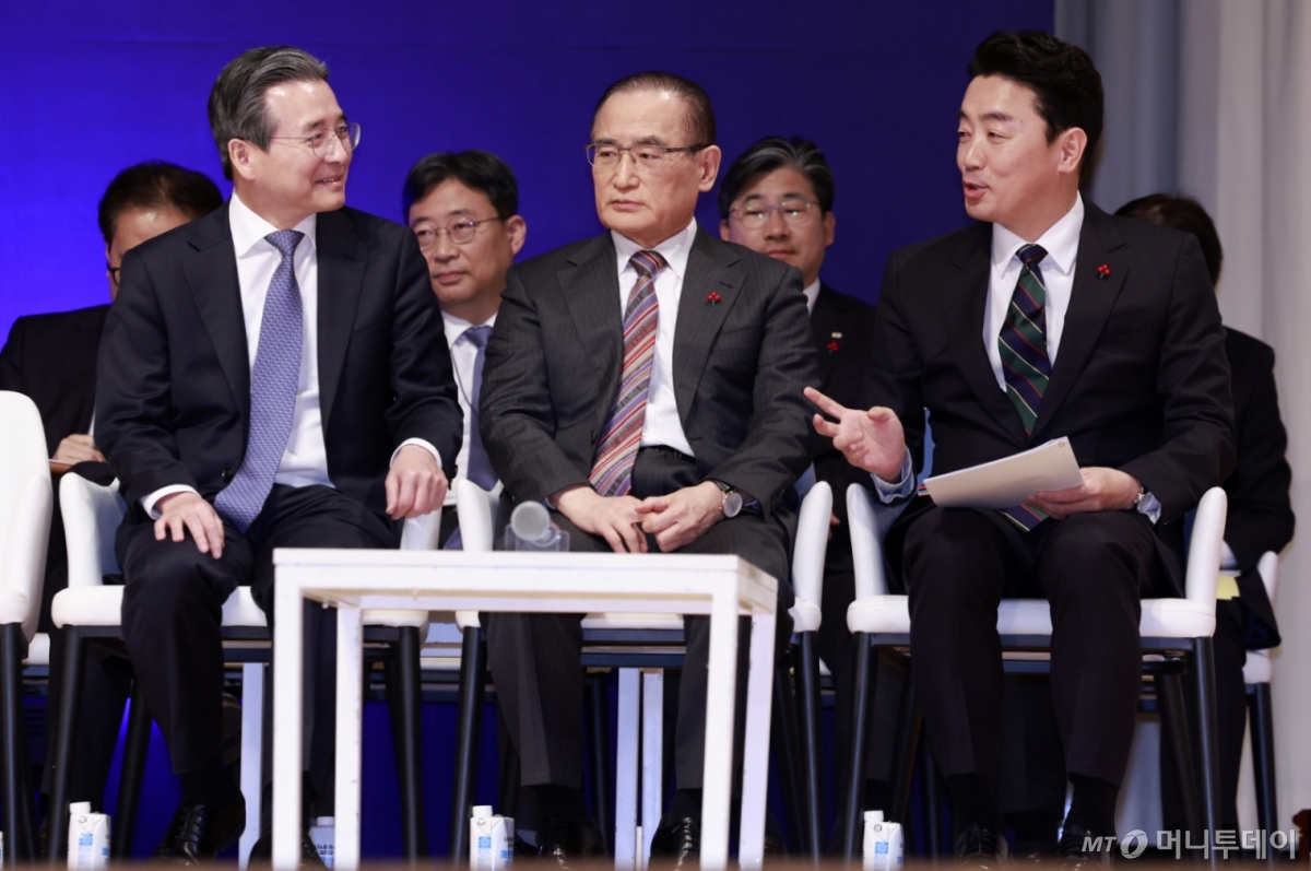 ![[서울=뉴시스] 최동준 기자 = 김용범(왼쪽부터) 정책실장, 위성락 국가안보실장, 강훈식 비서실장이 7일 서울 용산 대통령실 청사에서 열린 3실장 및 수석비서관 '대통령실 6개월 성과 간담회'에 앞서 대화를 나누고 있다. 2025.12.07. photocdj@newsis.com /사진=최동준](https://thumb.mt.co.kr/cdn-cgi/image/f=avif/21/2025/12/2025120714514523161_1.jpg)