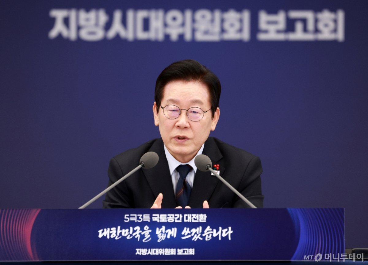 ![[서울=뉴시스] 고범준 기자 = 이재명 대통령이 8일 서울 용산 대통령실 청사에서 열린 지방시대위원회 보고회에서 발언하고 있다. 2025.12.08. bjko@newsis.com /사진=고범준](https://thumb.mt.co.kr/cdn-cgi/image/f=avif/21/2025/12/2025120816403757938_1.jpg)
