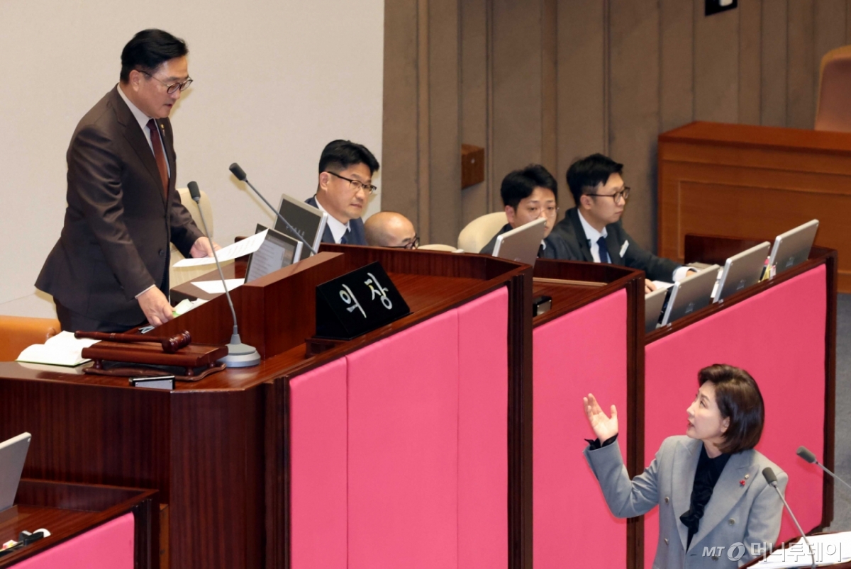 [the300] 우원식 국회의장이 9일 서울 여의도 국회에서 열린 제429회국회(정기회) 제16차 본회의에서 가맹사업거래의 공정화에 관한 법률 일부개정법률안에 대해 무제한 토론을 하는 나경원 국민의힘 의원과 대화를 하고 있다./사진=뉴시스 9일 서울 여의도 국회 본회의 독자들의 PICK! 동서와 갈등→파혼 2번 아내..."조카는 남편 아이" 의심 충격 "남성 의사가 은밀한 곳 봤잖아" 이혼 선언…산부인과서 난동 "솔로몬도 못 풀어"...쌍둥이 형제와 관계 후 낳은 딸, 친부는 누구? "자기야" 댄스강사 그놈, 여친만 8명?..."교통사고 났어" 2억 뜯었다