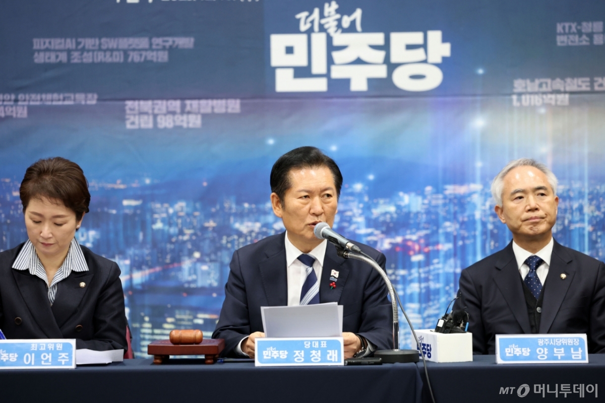 정 대표는 10일 오전 광주 서구 김대중컨벤션센터에서 열린 광주 현장 최고위원회의에서 "이것이 이재명 대통령께서 말씀하신 내란 청산 후 정의로운 통합으로 가는 길"이라며 이같이 말했다.