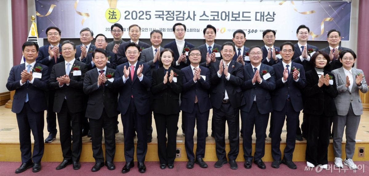 11일 서울 여의도 국회 의원회관에서 열린 '2025 국정감사 스코어보드 대상'에서 김익태 머니투데이 편집국장과 수상자들이 기념촬영을 하고 있다. 독자들의 PICK! '성매매 논란' 지나, 결혼·출산?…웨딩드레스 이어 유모차까지 100만원도 못 벌던 개그맨..."수입 1000배" 변호사 된 깜짝 근황 엄마 출근하면 돌변한 아빠...'미성년' 의붓딸 성폭행, 2살 친딸도 폭행 "제수씨와 잠자리를?" 초강수 질문…'친자확인' 남편, 끝내 결백 입증