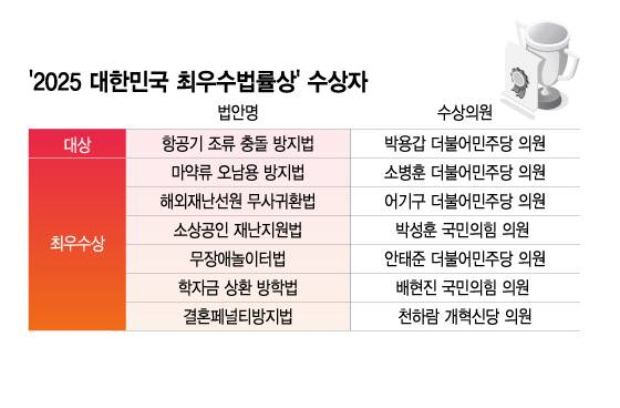 올해 최우수법률상을 관통하는 키워드는 국민 안전과 약자 보호였다. 채원호 심사위원장(가톨릭대 교수)은 "올해 응모된 법안들에는 국민 안전 강화와 사회적 약자 보호 등 우리 사회가 당면한 과제를 다양하게 풀어내고자 한 노력이 담겨있었다"고 평가했다.