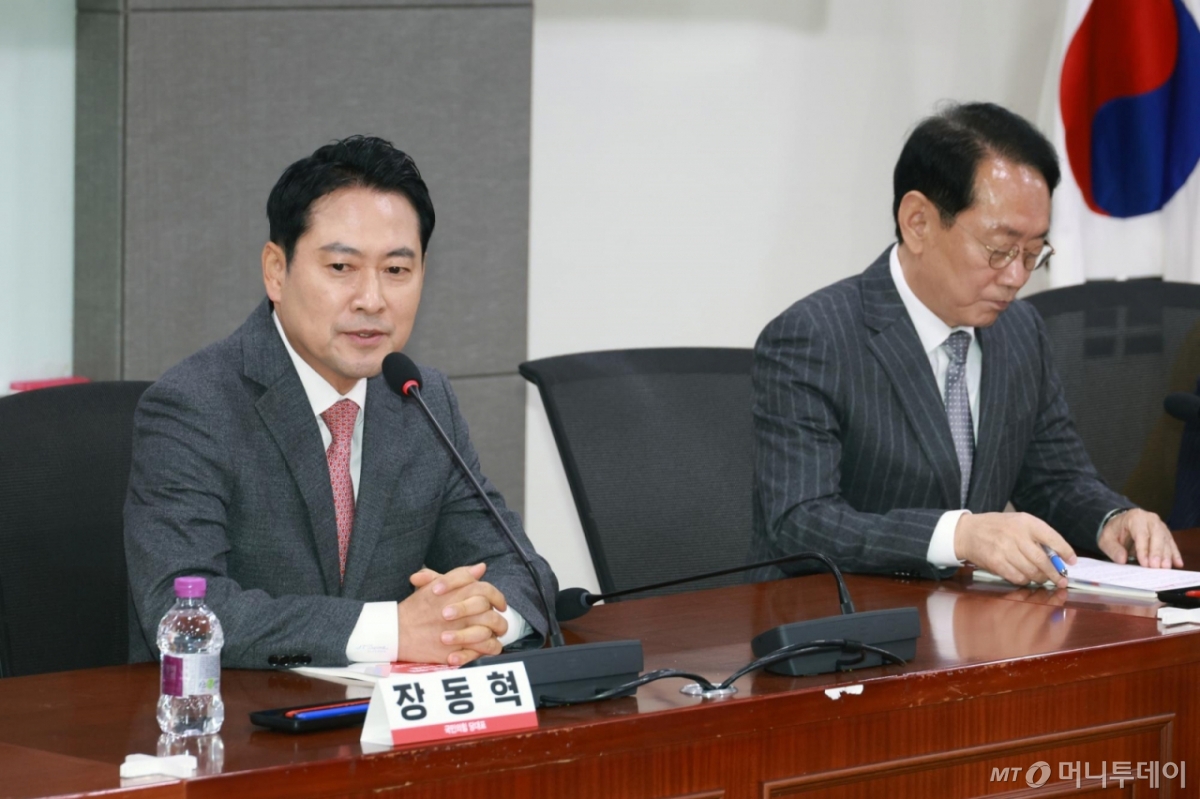 ![[서울=뉴시스] 고승민 기자 = 장동혁 국민의힘 대표가 15일 서울 여의도 국회 의원회관에서 열린 '청년 일자리 감소 없는 고용 연장제도 마련 국회 토론회'에서 인사말을 하고 있다. 2025.12.15. kkssmm99@newsis.com /사진=고승민](https://thumb.mt.co.kr/cdn-cgi/image/f=avif/21/2025/12/2025121516311220693_1.jpg)