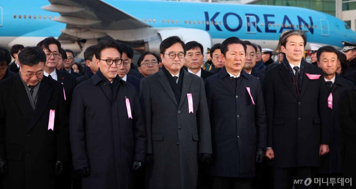 김민석 국무총리, 우원식 국회의장, 정청래 더불어민주당 대표, 조국 조국혁신당 대표 등이 27일 오전 인천국제공항에서 이해찬 민주평화통일자문회의 수석부의장의 시신을 영접하고 있다. 독자들의 PICK! 100만원도 못 벌던 개그맨..."수입 1000배" 변호사 된 깜짝 근황 "조진웅, 은퇴할 줄 몰랐다…식사 제안도 거절" 정지영 감독이 전한 근황 "새벽에 전화, 돈 요구" 김원희, 사생활 털렸다...해킹범이 협박 "수영장서 불륜" 증거 잡은 아내 고소 당했다...간통죄 폐지 후 벌어진 일