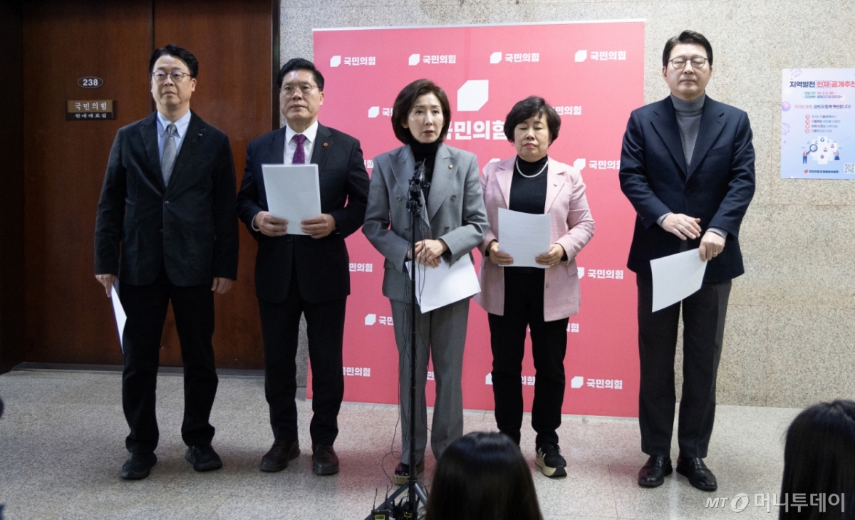 나경원 국민의힘 의원은 11일 오후 서울 여의도 국회에서 기자회견을 열고 "법사위 법안심사1소위에서 한시간만에 4심제를 통과시켰다"며 "이 대통령 재판을 뒤집기 할 수 있다고 판단한 것"이라고 밝혔다.
