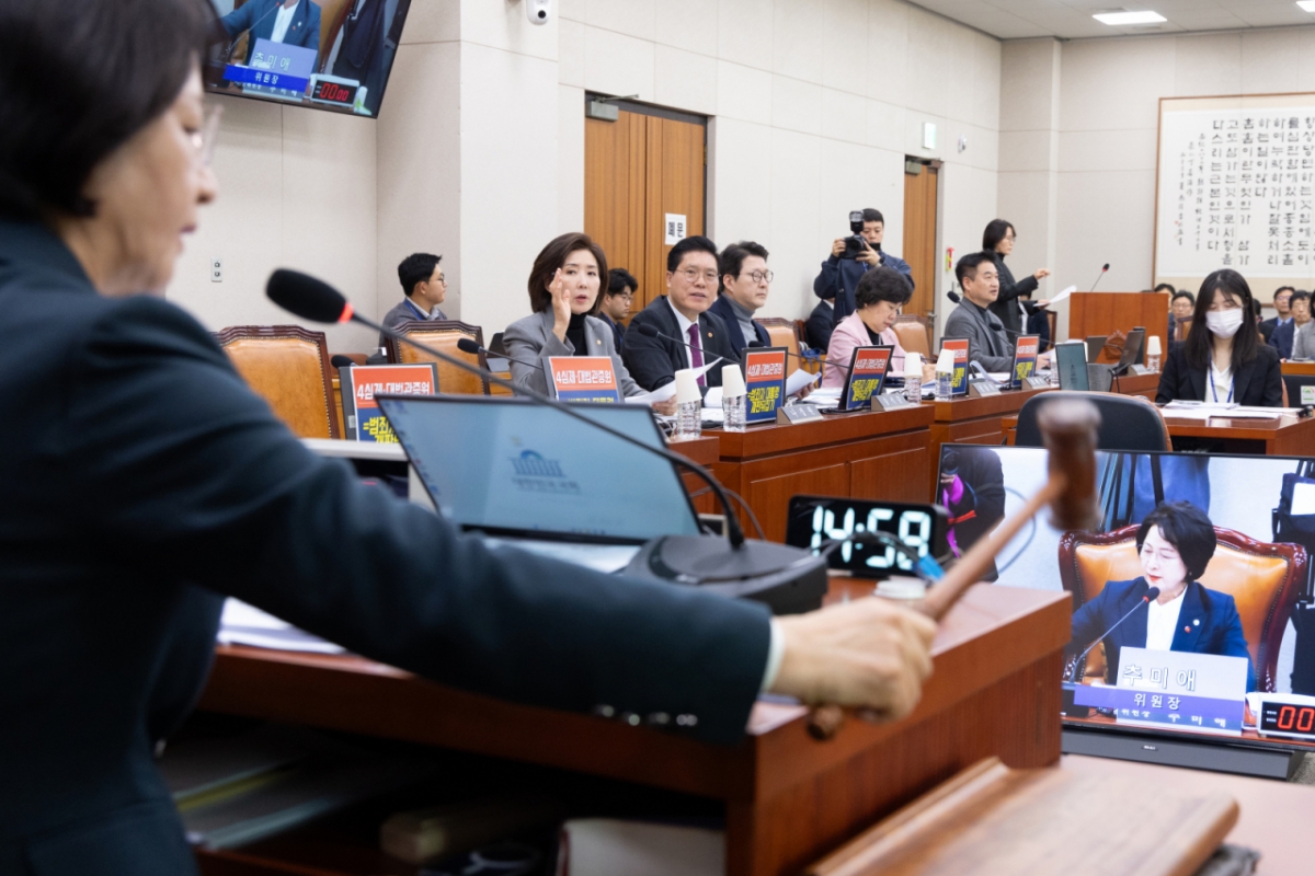 신동욱 국민의힘 의원도 이날 법사위 전체회의에서 "교과서에도 나오는 3심제를 4심제로 바꾸는 법안을 단 1시간 만에 강행통과시키고 그 뒤에 민생법안 63개를 붙여 압박하고 있다"고 지적했다.