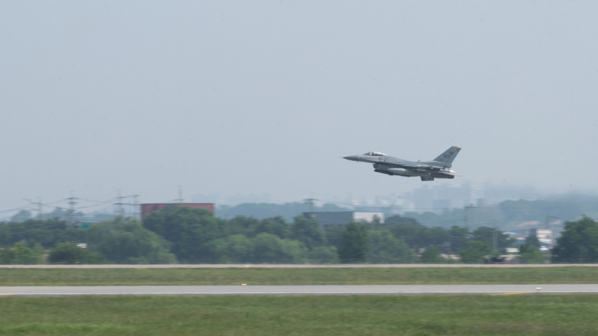 ![[서울=뉴시스] 미 공군 F-16 전투기가 오산기지에서 이륙하고 있다. /사진=](https://thumb.mt.co.kr/cdn-cgi/image/f=avif/21/2026/02/2026021913334021603_1.jpg)