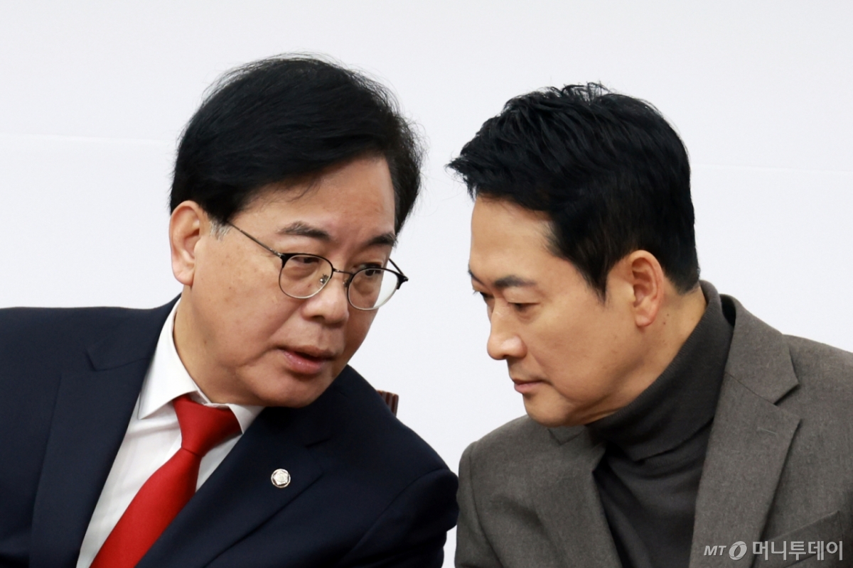 ![[서울=뉴시스] 고승민 기자 = 국민의힘 장동혁 대표와 송언석 원내대표가 19일 서울 여의도 국회에서 열린 최고위원회의에서 대화하고 있다. 2026.02.19. kkssmm99@newsis.com /사진=고승민](https://thumb.mt.co.kr/cdn-cgi/image/f=avif/21/2026/02/2026021916135515400_1.jpg)
