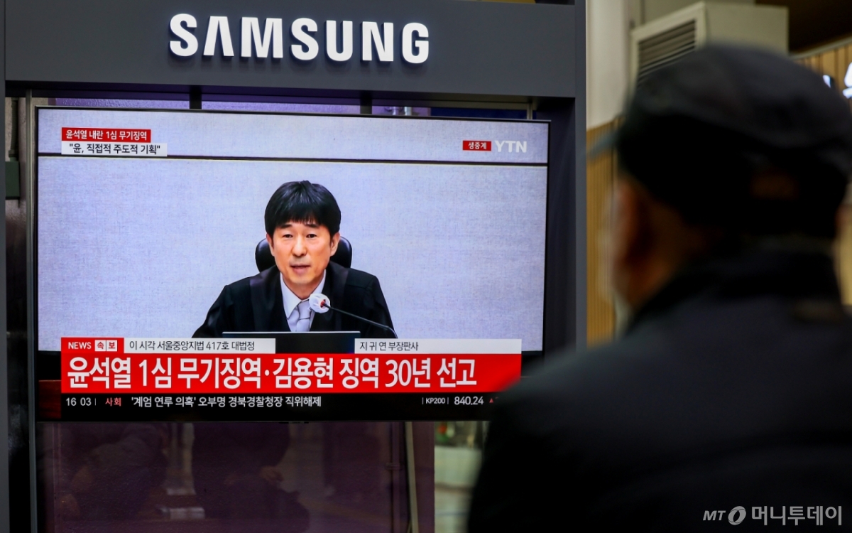 ![[대구=뉴시스] 이무열 기자 = 19일 대구 동구 동대구역 대합실에서 시민들이 ‘내란 우두머리 혐의’ 윤석열 전 대통령의 1심 선고 공판 TV 생중계를 시청하고 있다. 이날 서울중앙지법 형사합의25부(지귀연 부장판사)는 윤 전 대통령에게 무기징역을 선고했다. 2026.02.19. lmy@newsis.com /사진=이무열](https://thumb.mt.co.kr/cdn-cgi/image/f=avif/21/2026/02/2026021916164911673_1.jpg)
