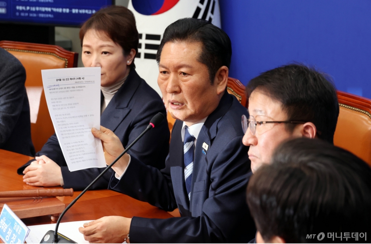 ![[서울=뉴시스] 조성봉 기자 = 정청래 더불어민주당 대표가 19일 오후 서울 여의도 국회에서 열린 최고위원회에서 '윤석열 전 대통령 내란 우두머리 혐의 사건 1심 선고' 관련 입장 발표를 하고 있다. 정 대표는 사형 아닌 무기징역 선고에 유감을 밝히며 매우 미흡한 판결이라고 지적했다. 2026.02.19. suncho21@newsis.com /사진=조성봉](https://thumb.mt.co.kr/cdn-cgi/image/f=avif/21/2026/02/2026021917091817389_1.jpg)