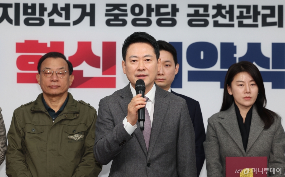 ![[서울=뉴시스] 권창회 기자 = 장동혁 국민의힘 대표가 23일 서울 여의도 국민의힘 당사에서 열린 제9회 전국동시지방선거 중앙당 공천관리위원회 공천 혁신 서약식에서 발언하고 있다. 2026.02.23. kch0523@newsis.com /사진=](https://thumb.mt.co.kr/cdn-cgi/image/f=avif/21/2026/02/2026022611545297313_1.jpg)