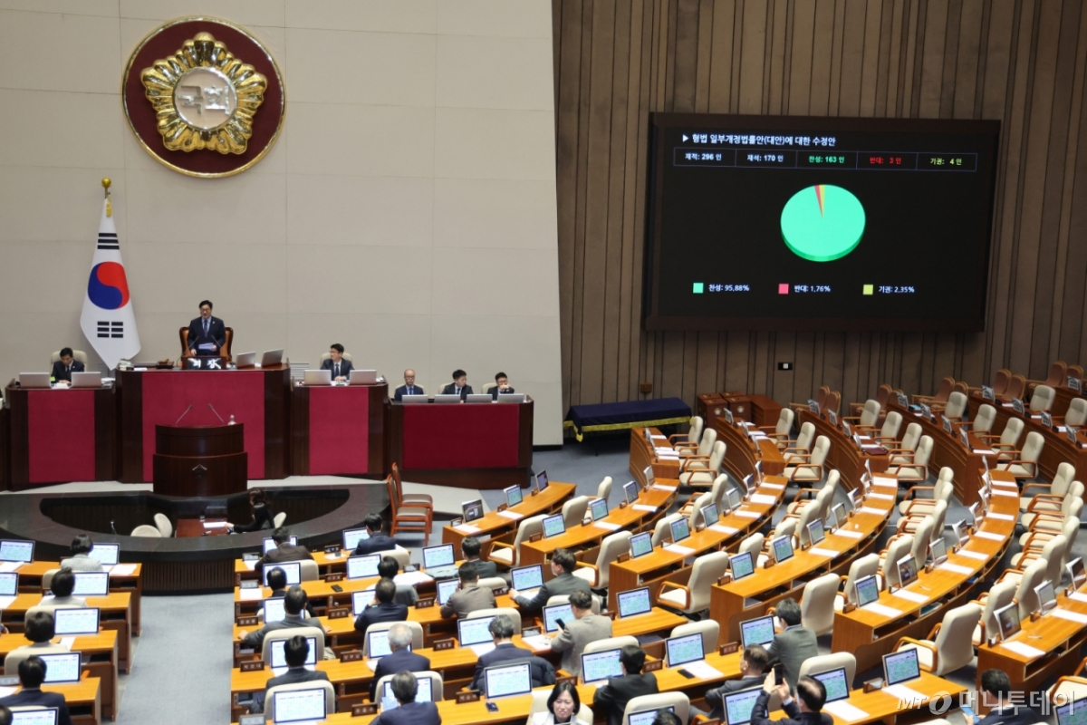 필리버스터 종결 직후 형법 개정안에 대한 표결이 이어졌다. 법안은 재석 170명, 찬성 163명, 반대 3명, 기권 4명으로 가결됐다.
