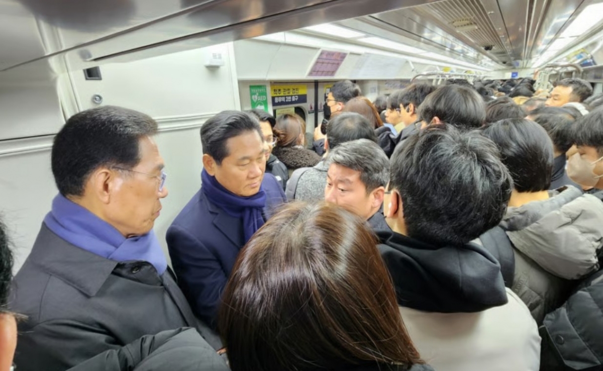 김 총리는 지하철 혼잡도가 높은 오전 7시30분쯤 서우역 출근길 열차에 올랐다. 열차 내부는 사람들로 꽉 차 옆 사람과 따닥따닥 붙어있어야 했다. 김 총리를 비롯해 시민들 대다수는 손잡이를 잡은 채 서 있었다.