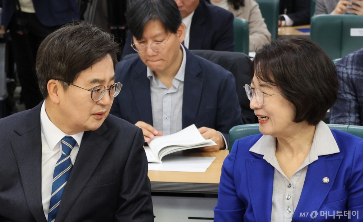 ![[서울=뉴시스] 김금보 기자 = 김동연(왼쪽) 경기도지사와 추미애 더불어민주당 의원이 10일 오전 서울 여의도 국회 의원회관에서 열린 '경기도 주 4.5일제 시범사업 효과 분석 정책 토론회'에서 대화를 하고 있다. 2026.03.10. kgb@newsis.com /사진=김금보](https://thumb.mt.co.kr/cdn-cgi/image/f=avif/21/2026/03/2026031007505292246_1.jpg)