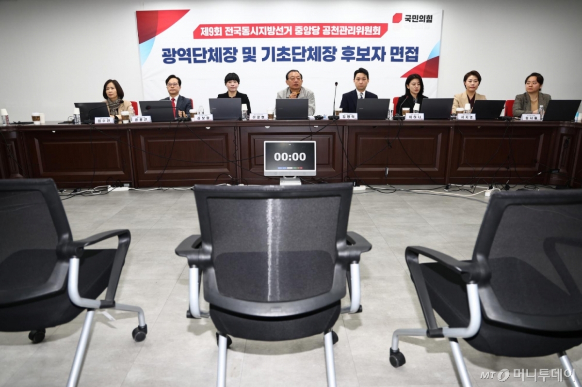 국민의힘 중앙당 공천관리위원회는 이날 오전부터 서울 여의도 당사에서 서울·대구 등 광역단체장 선거에 공천 신청을 한 이들을 대상으로 면접을 진행했다. 이날 면접은 1분 자기소개와 지역 비전 프레젠테이션(PT), 질의응답 등으로 진행됐다.