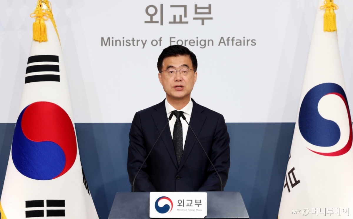 ![[서울=뉴시스] 추상철 기자 = 이재웅 외교부 대변인이 18일 오후 서울 종로구 정부서울청사에서 정례브리핑을 하고 있다. 2025.11.18.](https://thumb.mt.co.kr/cdn-cgi/image/f=avif/21/2026/03/2026031114593695115_1.jpg)