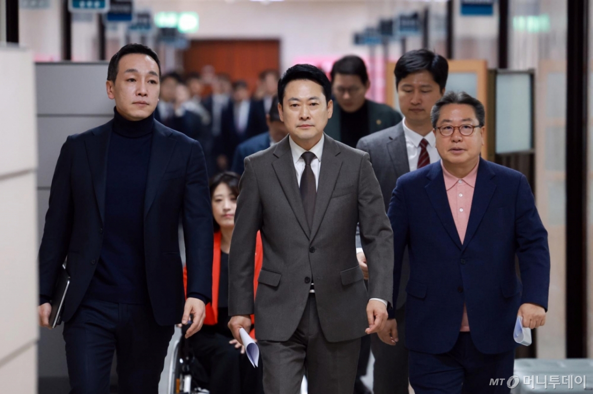 ![[서울=뉴시스] 고승민 기자 = 국민의힘 장동혁 대표 등 지도부가 12일 서울 여의도 국회에서 열린 최고위원회의에 참석하고 있다. 2026.03.12. kkssmm99@newsis.com /사진=고승민](https://thumb.mt.co.kr/cdn-cgi/image/f=avif/21/2026/03/2026031210310184171_1.jpg)