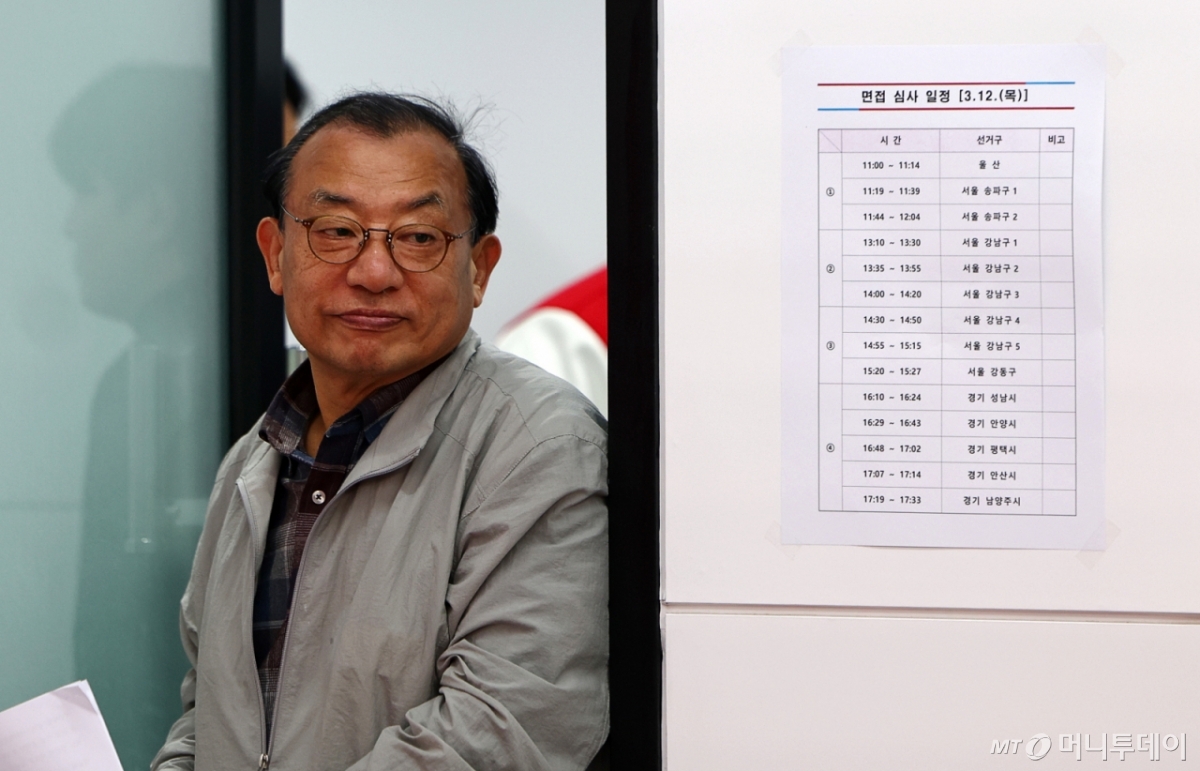 ![[서울=뉴시스] 김명년 기자 = 이정현 국민의힘 공천관리위원장이 12일 서울 여의도 중앙당사에서 브리핑하기 위해 이동하고 있다. 2026.03.12. kmn@newsis.com /사진=김명년](https://thumb.mt.co.kr/cdn-cgi/image/f=avif/21/2026/03/2026031413211499233_1.jpg)