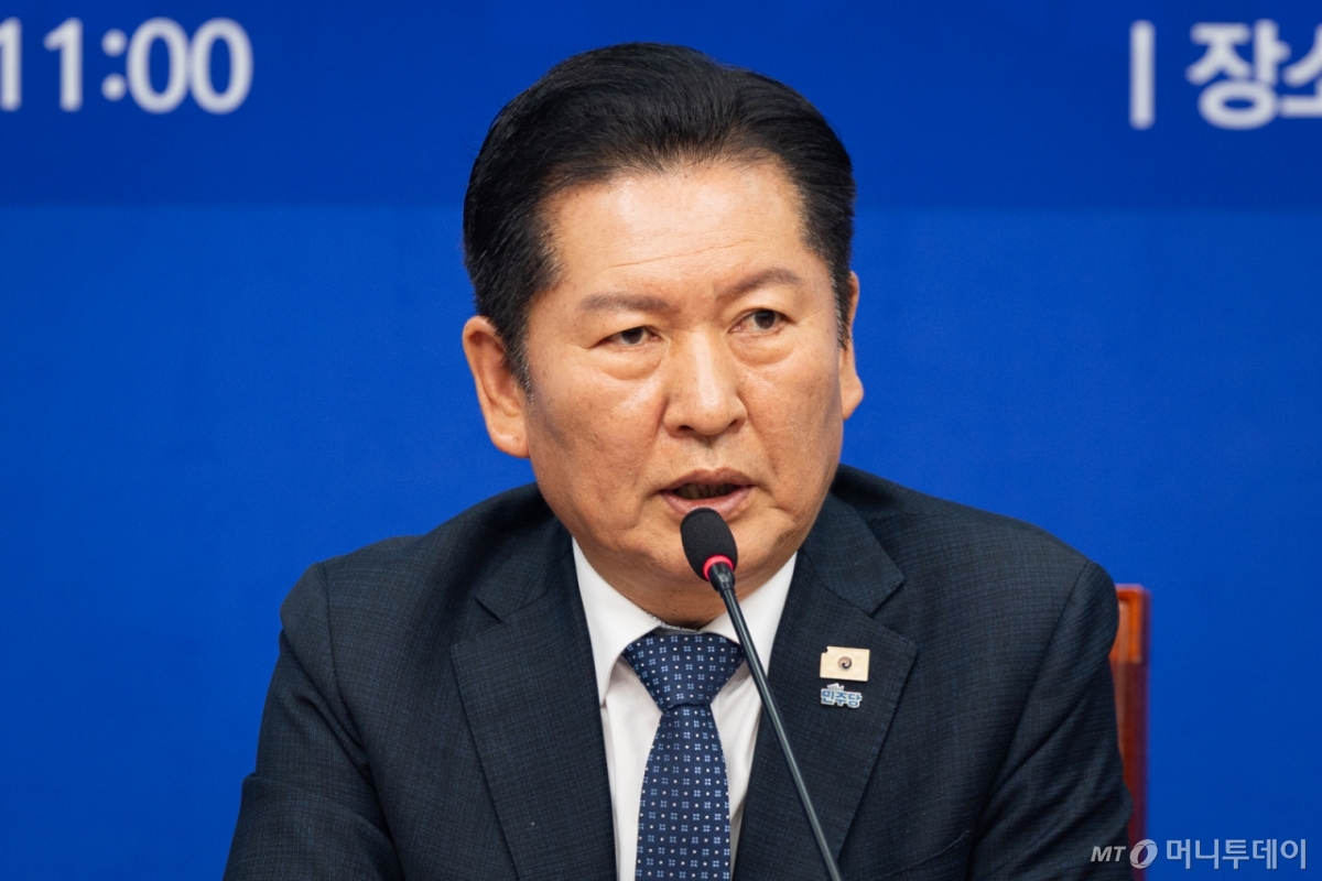 정청래 더불어민주당 대표가 16일 서울 여의도 국회에서 열린 시·도당위원장협의회 회의에서 모두 발언을 하고 있다./사진=뉴스1
