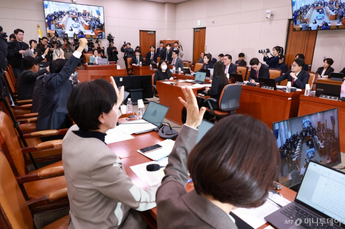 [the300] [서울=뉴시스] 고승민 기자 = 더불어민주당과 조국혁신당 법사위원들이 18일 서울 여의도 국회에서 열린 법제사법위원회 전체회의에서 안건에 대해 거수 찬성 투표를 하고 있다. 2026.03.18. [email protected] /사진=고승민 18일 국회 법제사법위원회 독자들의 PICK! "부부 침대에 시누이 들어온 것"…누나만 챙기는 남편 '경악' "심장병 딸 보다 내 부모 중요"…'서프라이즈' 배우 이혼 사유 충격 김구라 "나도 사랑했지만 이혼" 발끈...'17억 빚' 전처 언급 "'이숙캠' 방송 후 부부관계 더 나빠져"...걱정부부 끝내 이혼소송