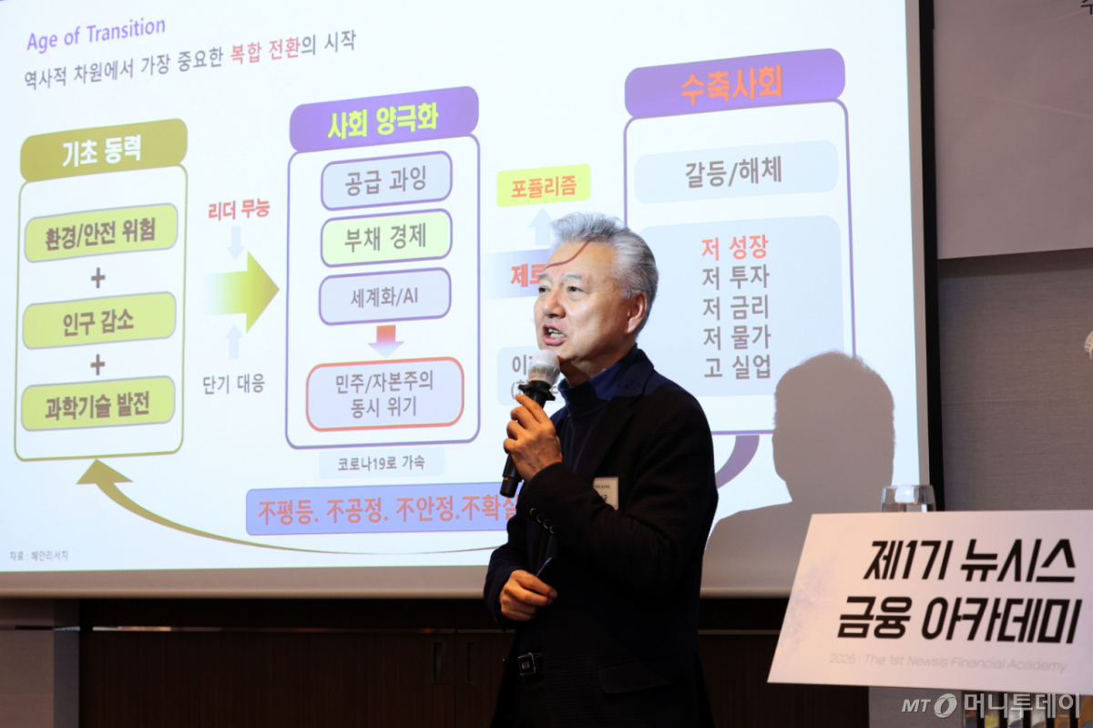 ![[서울=뉴시스] 이영환 기자 = 홍성국 전 더불어민주당 최고위원이 7일 오전 서울 중구 롯데호텔에서 열린 제1기 뉴시스 금융아카데미 8회차에서 '수축사회와 이재명 정부의 과제'를 주제로 강연을 하고 있다. 2026.01.07. 20hwan@newsis.com /사진=이영환](https://thumb.mt.co.kr/cdn-cgi/image/f=avif/21/2026/03/2026032416262110372_1.jpg)